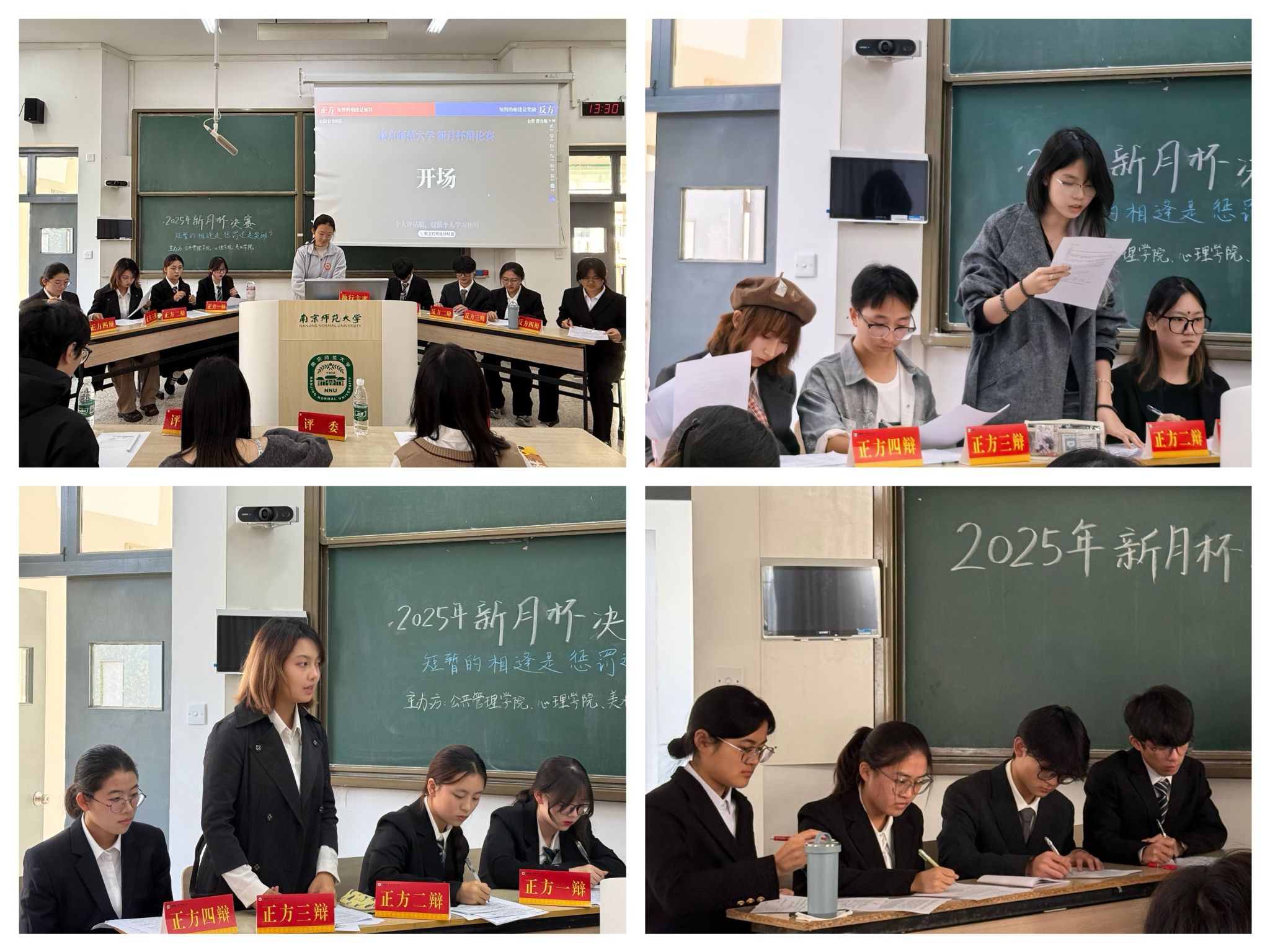 11月16日,由心理学院、公共管理学院和美术学院联合举办的“新月杯”新生辩论赛分别于学海楼410、310教室顺利开展。此次辩论赛面向三个学院2025级本科生,旨在提升新生的思辨能力与团队协作精神,为新生提供一个展示才华、交流思想的广阔平台。此次辩论赛以“短暂的相逢是惩罚还是奖励”为核心辩题,三支学院代表队通过循环赛制展开辩论。