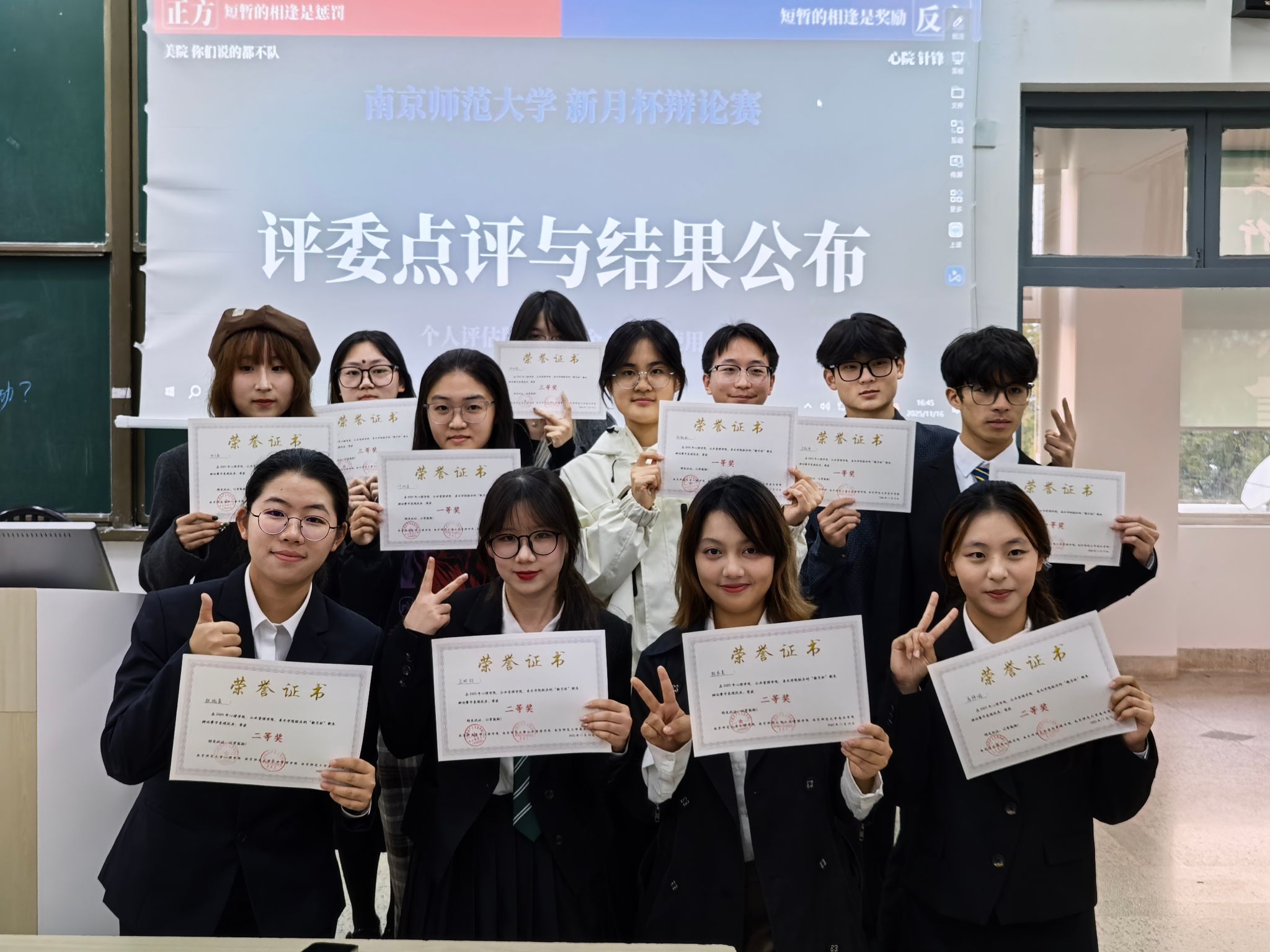 最终经过三轮激烈角逐,公共管理学院位列第一名,心理学院位列第二名,美术学院位列第三名。至此,2025级“新月杯”新生辩论赛圆满落幕。此次辩论赛不仅展示了心院学子的风采,锻炼了学子们的批判性思维与表达能力,更促进了不同学科背景学生的思想交流。希望在未来,学子们能够继续在辩论舞台上发光发热,展现自身能力与水平。