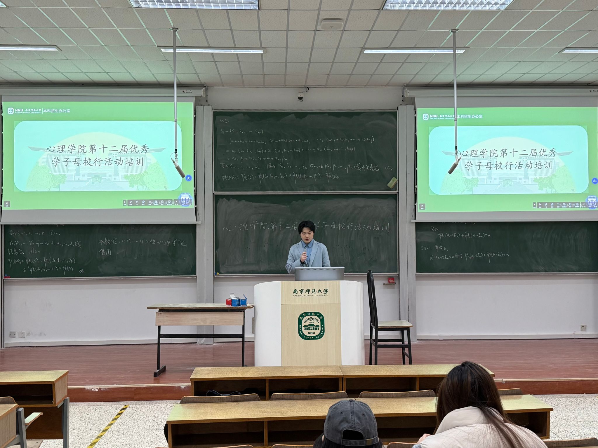 12月26日下午四点五十分,心理学院2026年“汇梦南师”计划暨第十二届优秀学子母校行招生宣传活动培训会顺利开展。此次培训会由心理学院青年志愿者协会会长孙国皓担任主讲,报名本次宣传活动的全体成员参与。